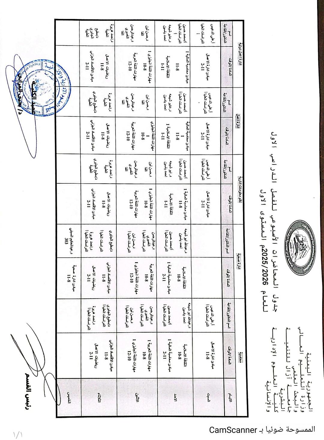 جدول كلية العلوم الادارية م1